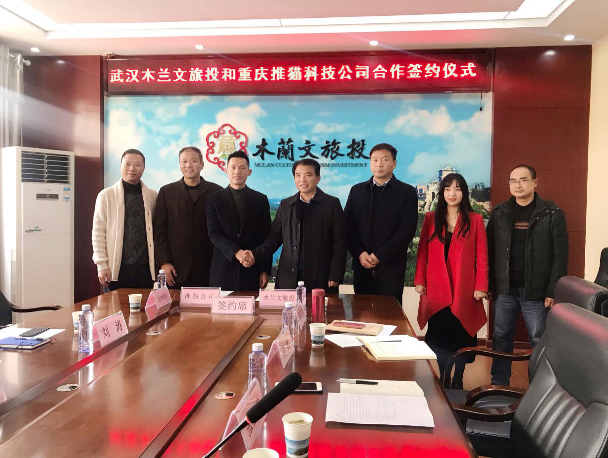 2019年12月26日上午,武漢市木蘭文化旅游發(fā)展投資有限公司和重慶推貓科技有限公司在木蘭文旅投會(huì )議室舉行黃陂區全域智慧旅游合作開(kāi)發(fā)項目簽約儀式。